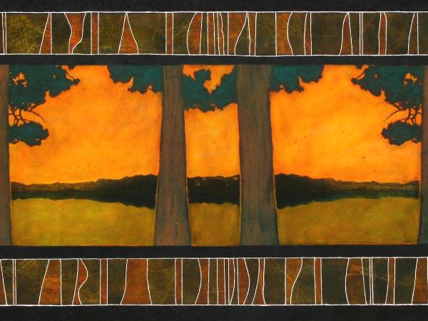 hand-etched, mixed media on photomontage on paper